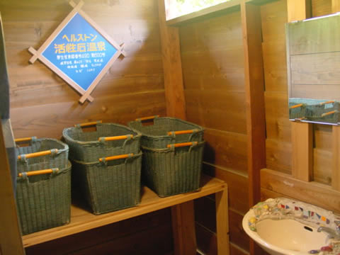 脱衣場には水場・脱衣カゴがあります。